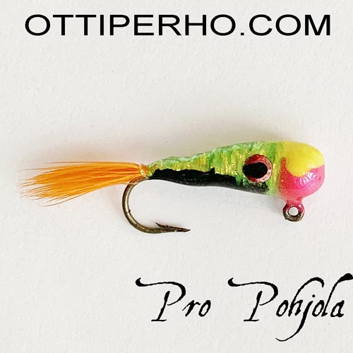 Pro Pohjolan minitasuri on sidottu Jig-koukkuun. Pilkki on painoitettu siten, että pilkittäessä pikkukalamainen uinti olis optimaalinen. Minitasuri on erittäin toimiva niin ahvenen, kirjolohen kuin myös pohjoisen vesille raudun pilkintään.