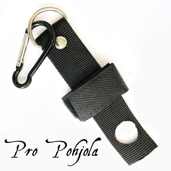Tämä kiinnitin kannattaa ehdottomasti kiinnittää perholiiveihin. Voit kiinnittää tähän esimerkiksi siimaleikkurin tai sakset. Kiinnittimen sisällä oleva vetonaru on samalla mitta.